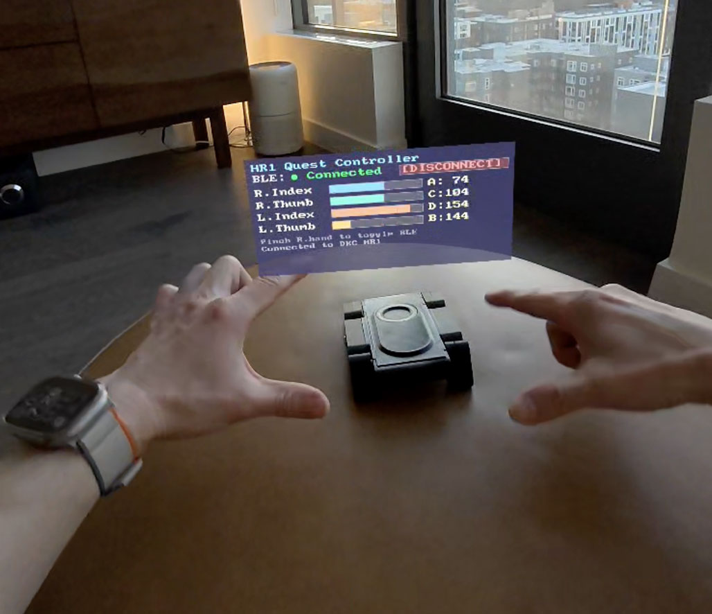 Friend 5 is a wearable robot that simulates hand holding by squeeze you via the…