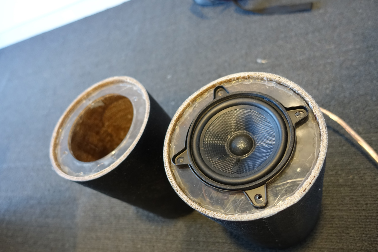 Denim and Burlap are great composite materials for my cannon speaker project. It produces rich base and clear high tones, and also has a nice surface finish. It’s both light weight and strong.