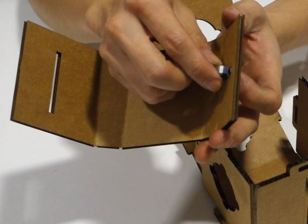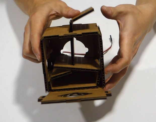 There are series of cardboard structures that holds the servo in place.
