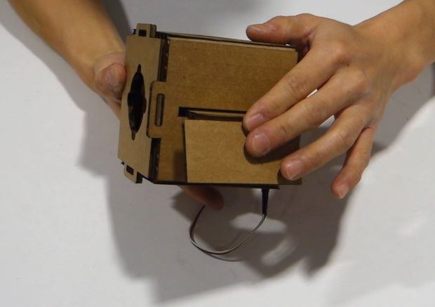 Test your cardboard switch before you close it up. You can see the snap action switch been pressed on the side of the box.