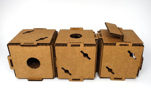 You can tell the difference but looking at the short sides of the rectangle, the one with the hole is female. You can friction fit the 2 pieces together, at 90 degree angle to form a corner. You might need to push the cardboard radon a but but it make for a strong join.