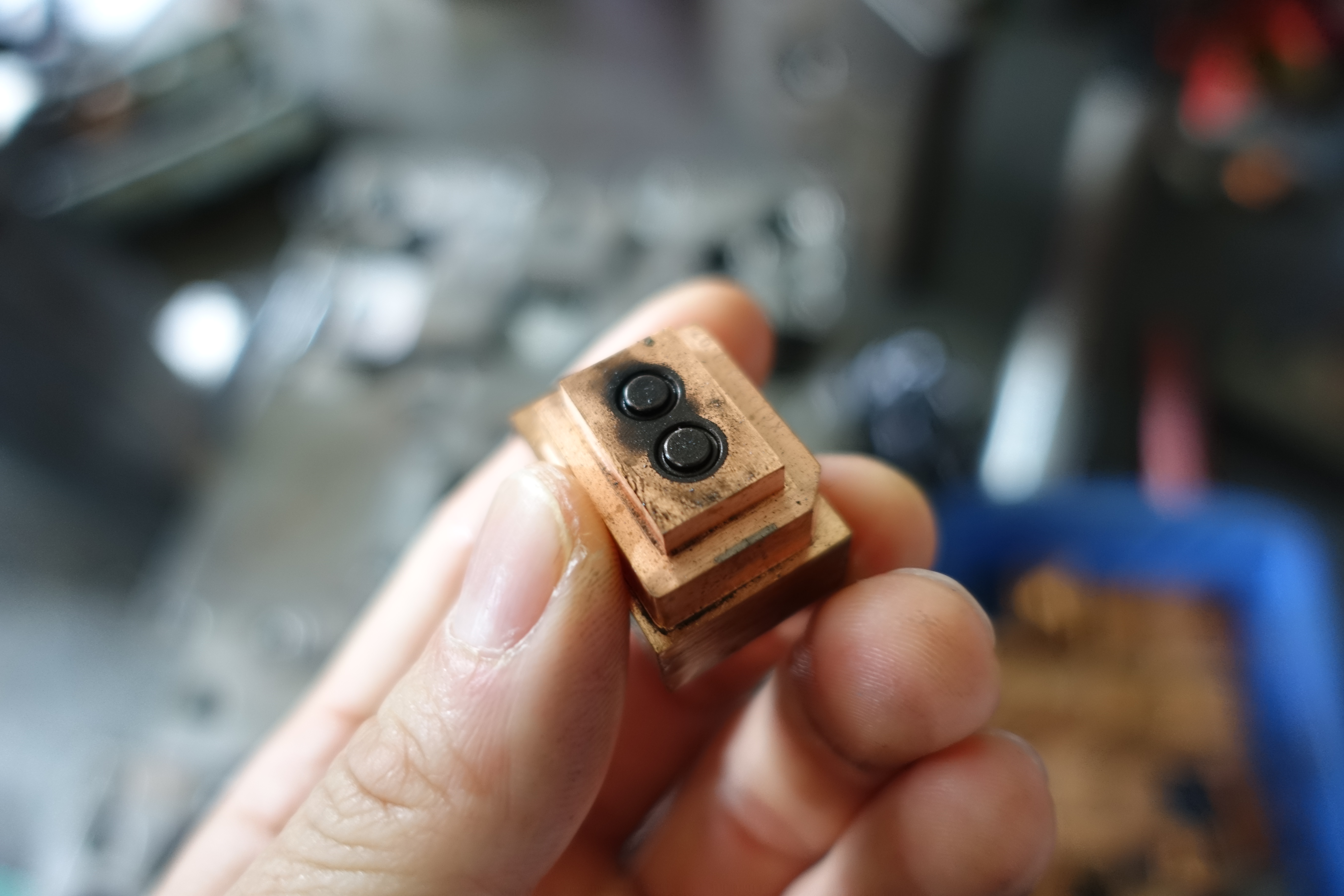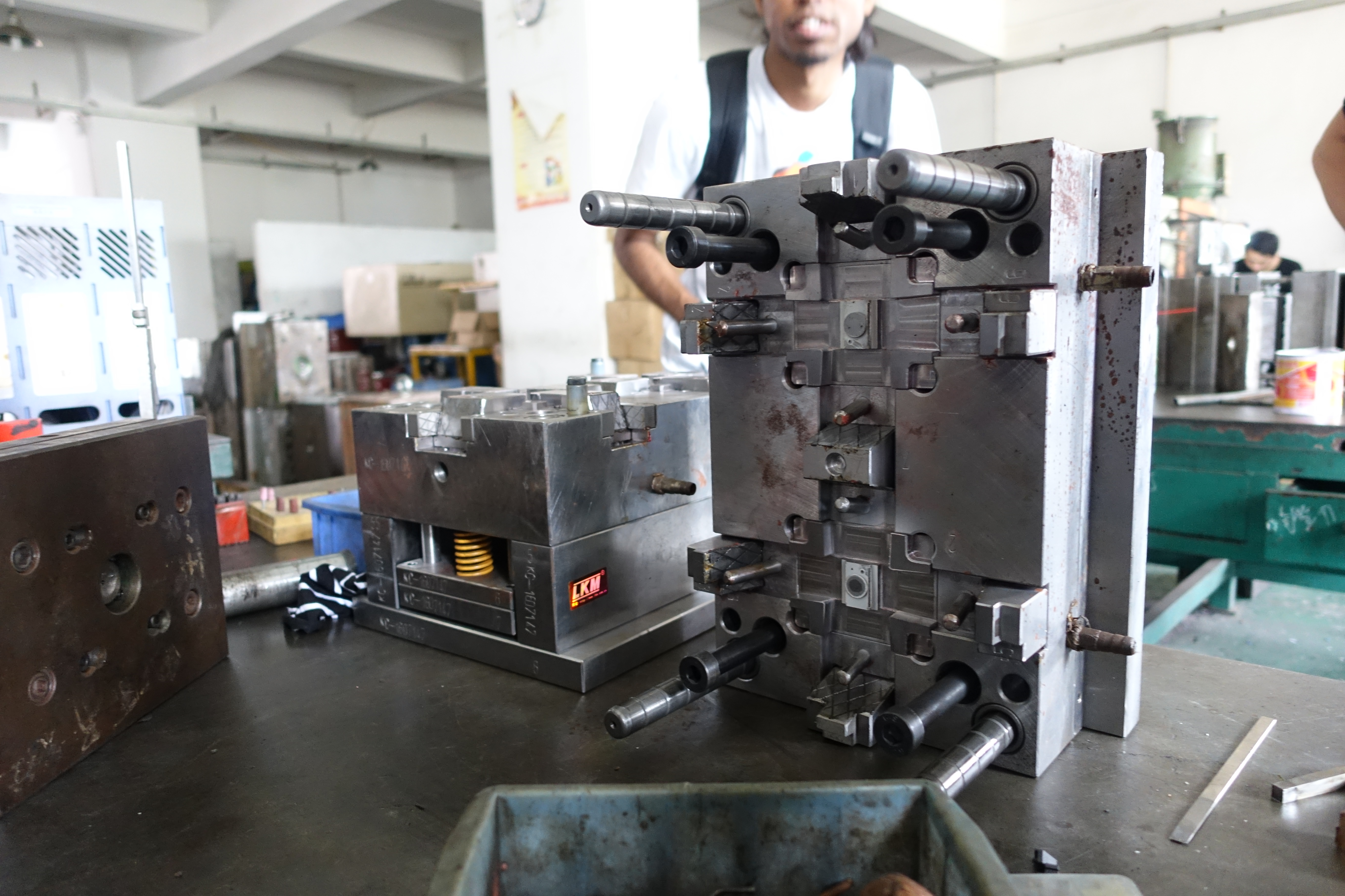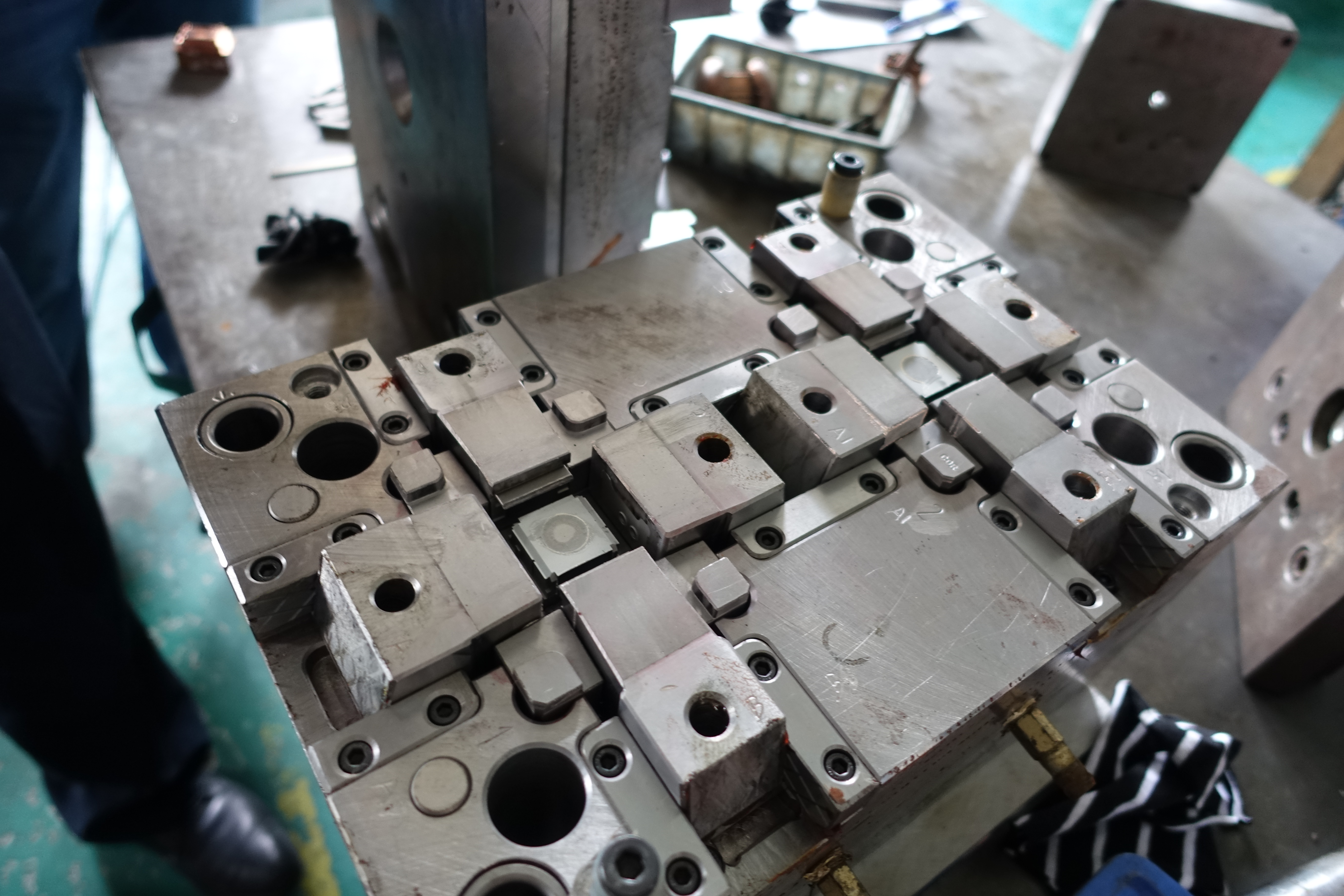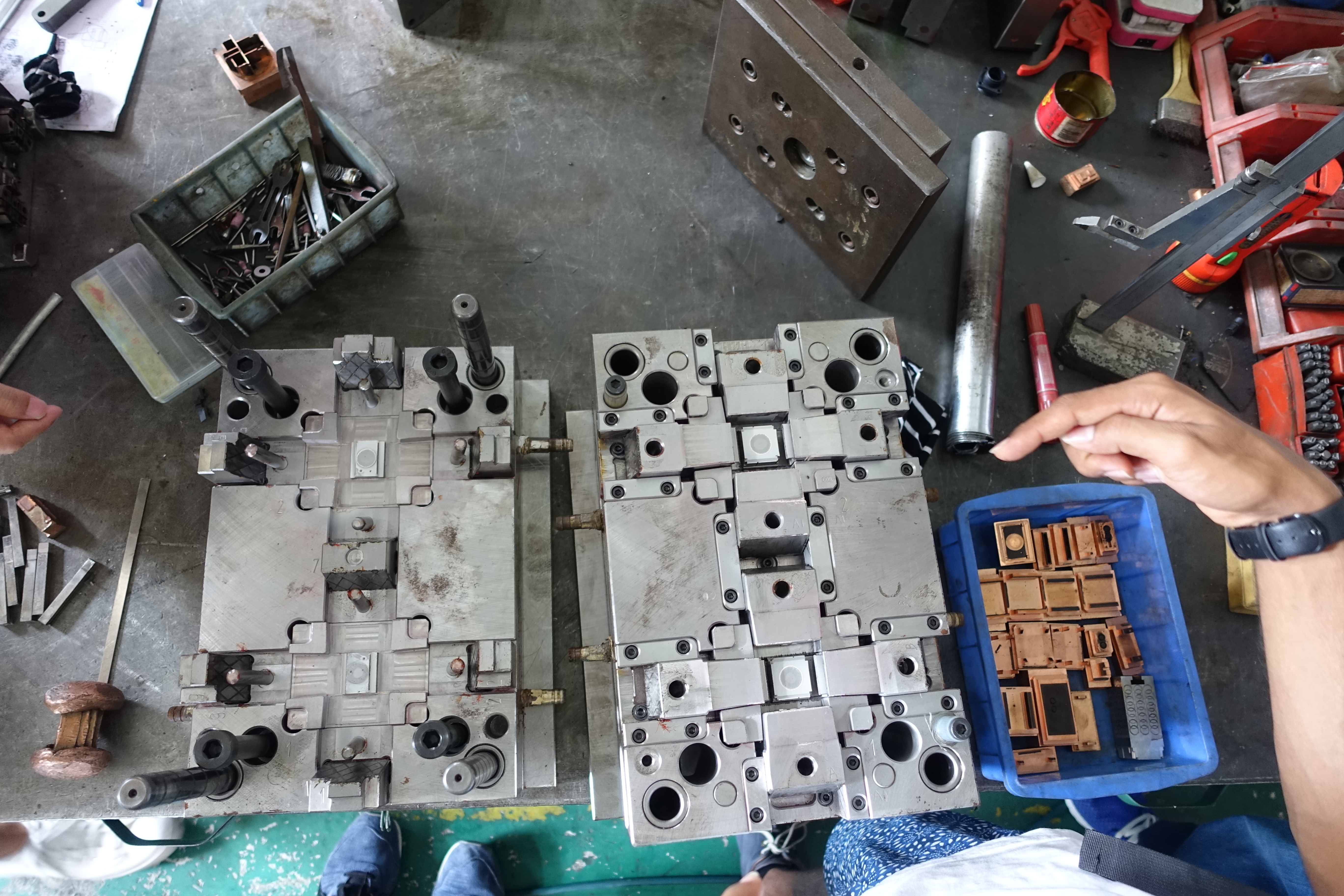 The little machine to the left is a hot oil pump, it pips in hot oil and goes into the runner of the tooling to heat the mold evenly.
