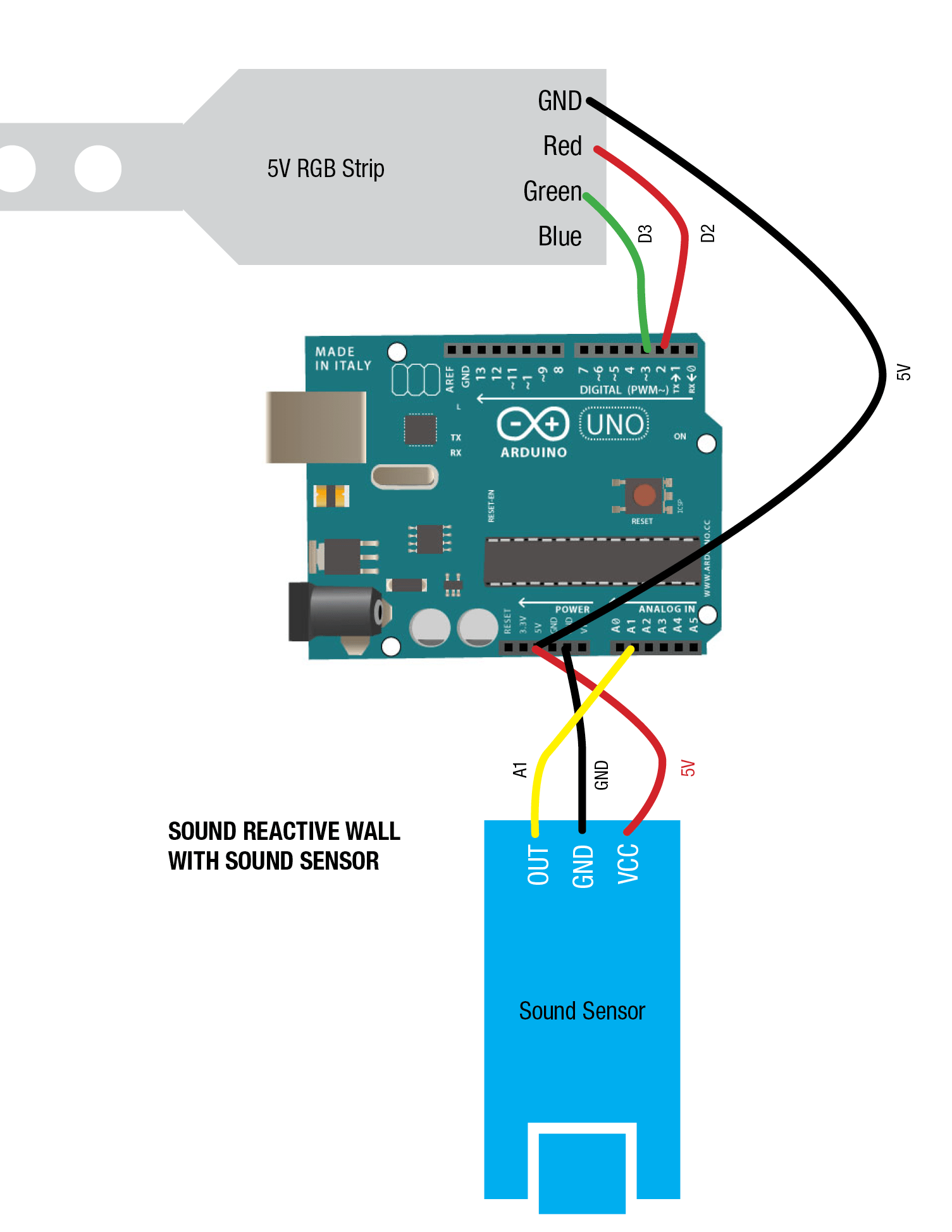 In my code, I only use 3 digital pins to sink current or provide current. It goes like this: Black Wire goes to VCC – 5V logic power Red Wire goes to Digital 2 Blue goes to Digital 3