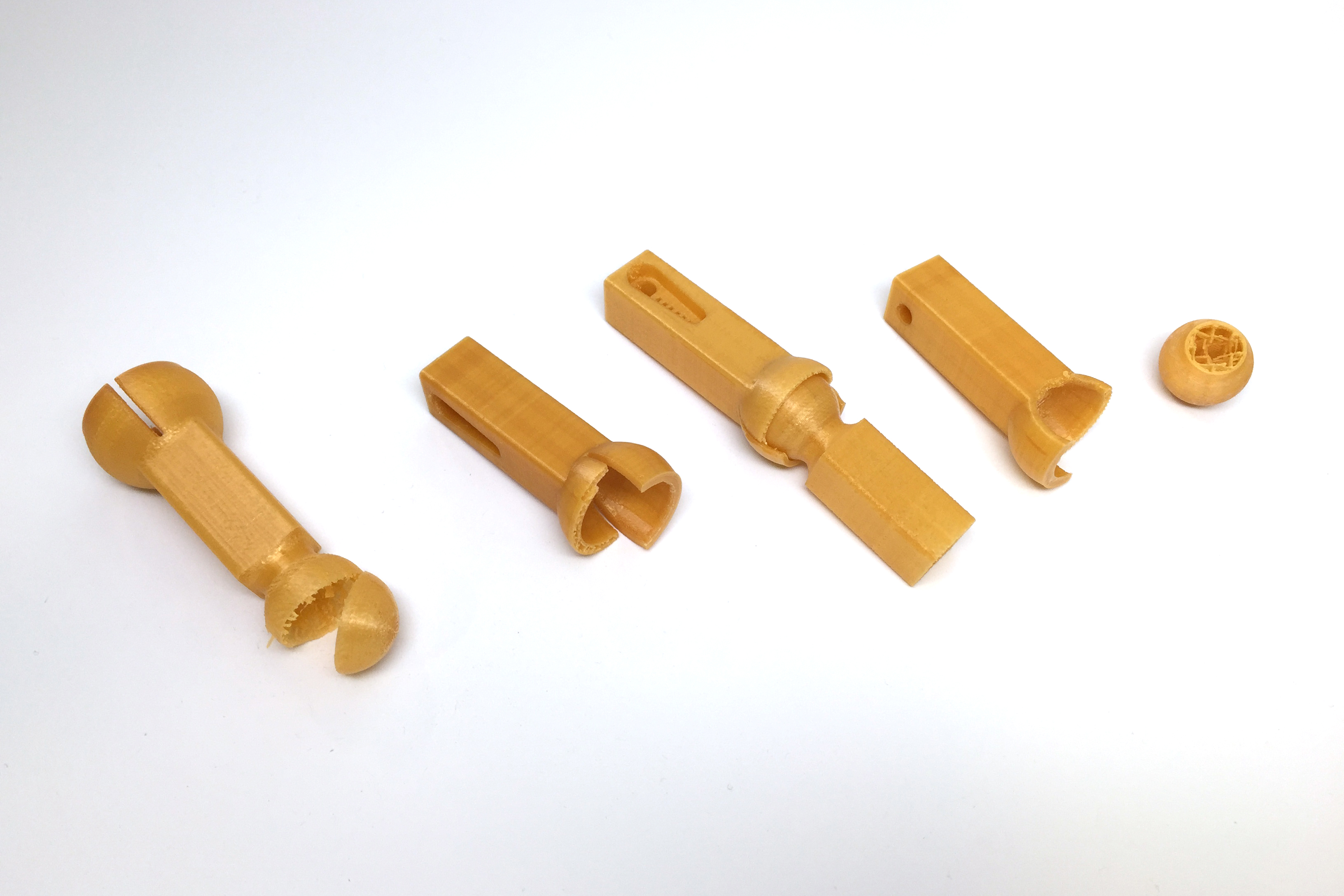 My goal was to design a flexible join out of 3D printed material, PET. It should be strong enough to hold a certain weight and at the same time easy to take apart, assembled and reassembled.